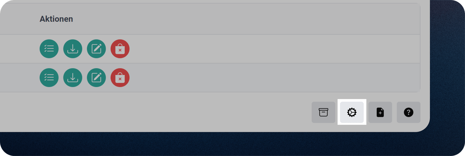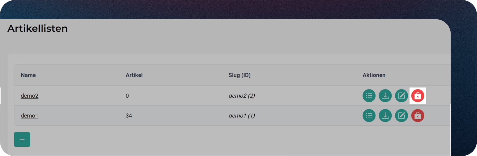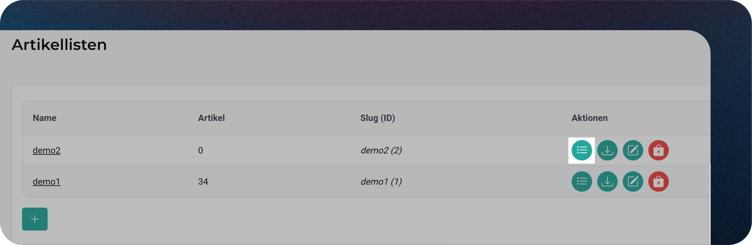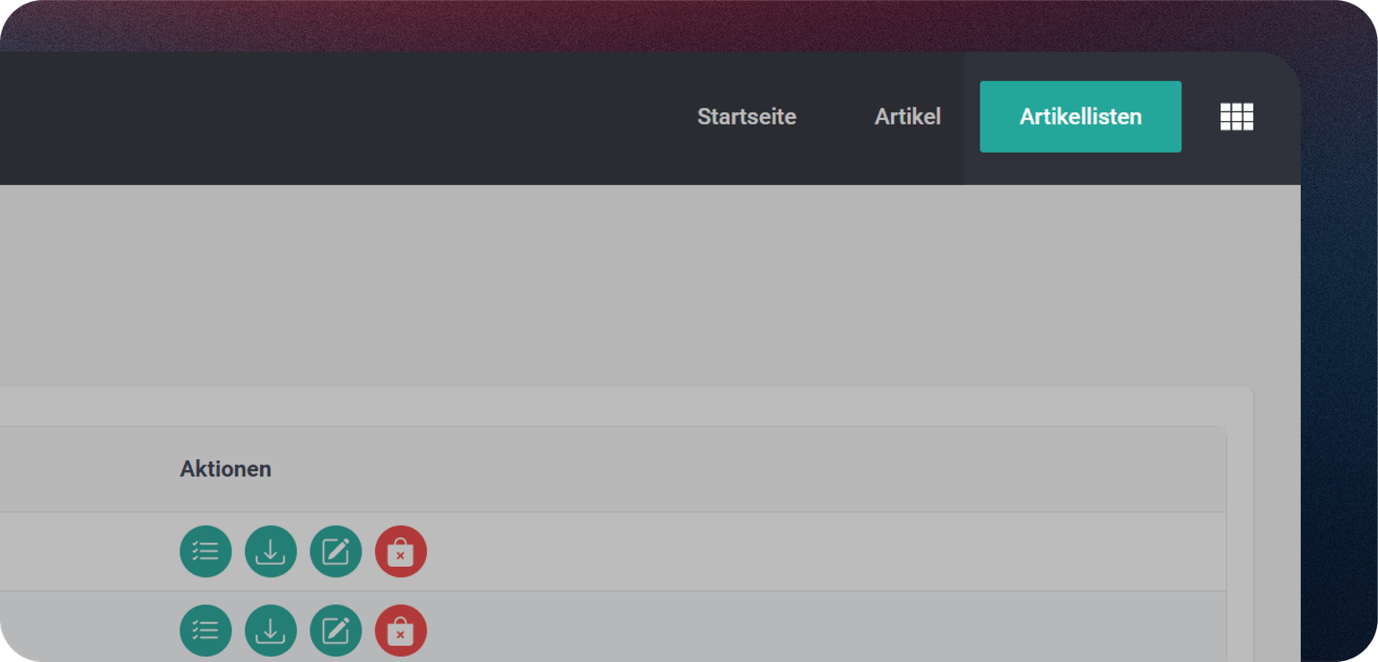 Am oberen Rand der Artikelliste sehen Sie die Aktionsschaltflächen.