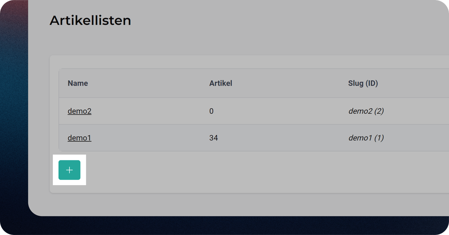 Name – Wählen Sie einen einprägsamen Namen, der die Artikelliste klar identifiziert.Slug – Der Slug muss vollständig in Kleinbuchstaben sein und darf keine Leerzeichen enthalten. Verwenden Sie Bindestriche (-), um Wörter zu trennen.Klicken Sie auf die erste Schaltfläche neben der Artikelliste, die Sie anzeigen möchten.