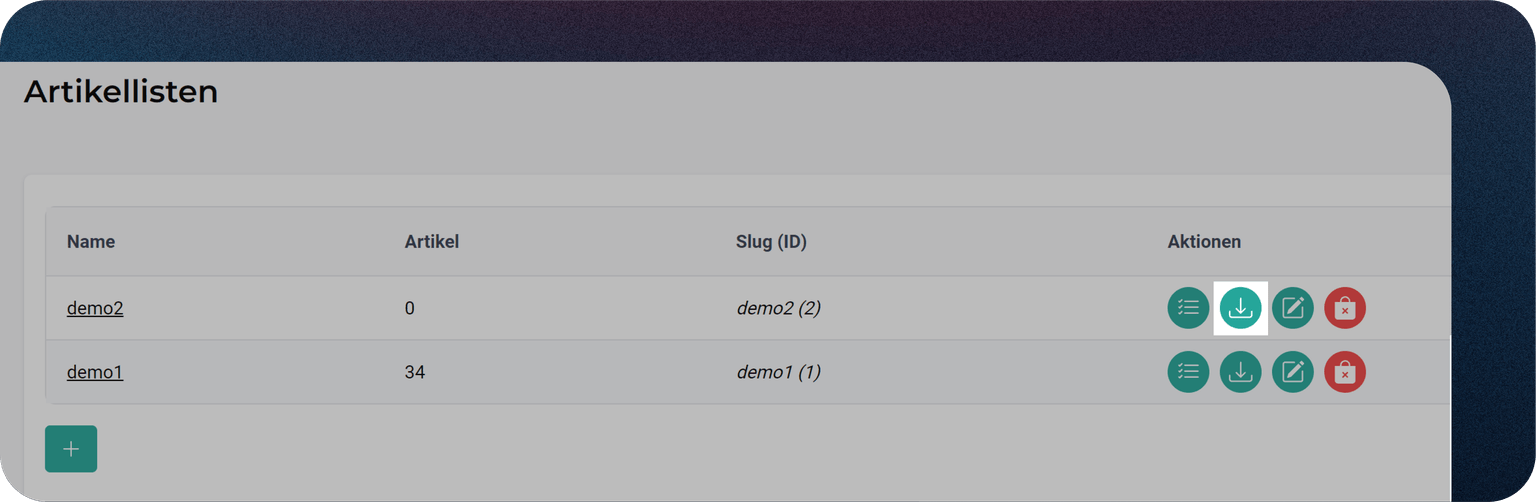 (Wenn alle Artikellisten ausgewählt sind, werden sie entsprechend alle heruntergeladen).